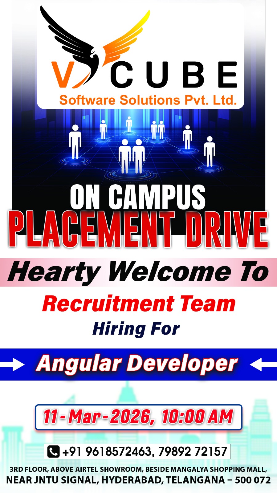 - 2nd Floor Above Raymond’s Clothing Store KPHB, Phase-1, Kukatpally, Hyderabad
